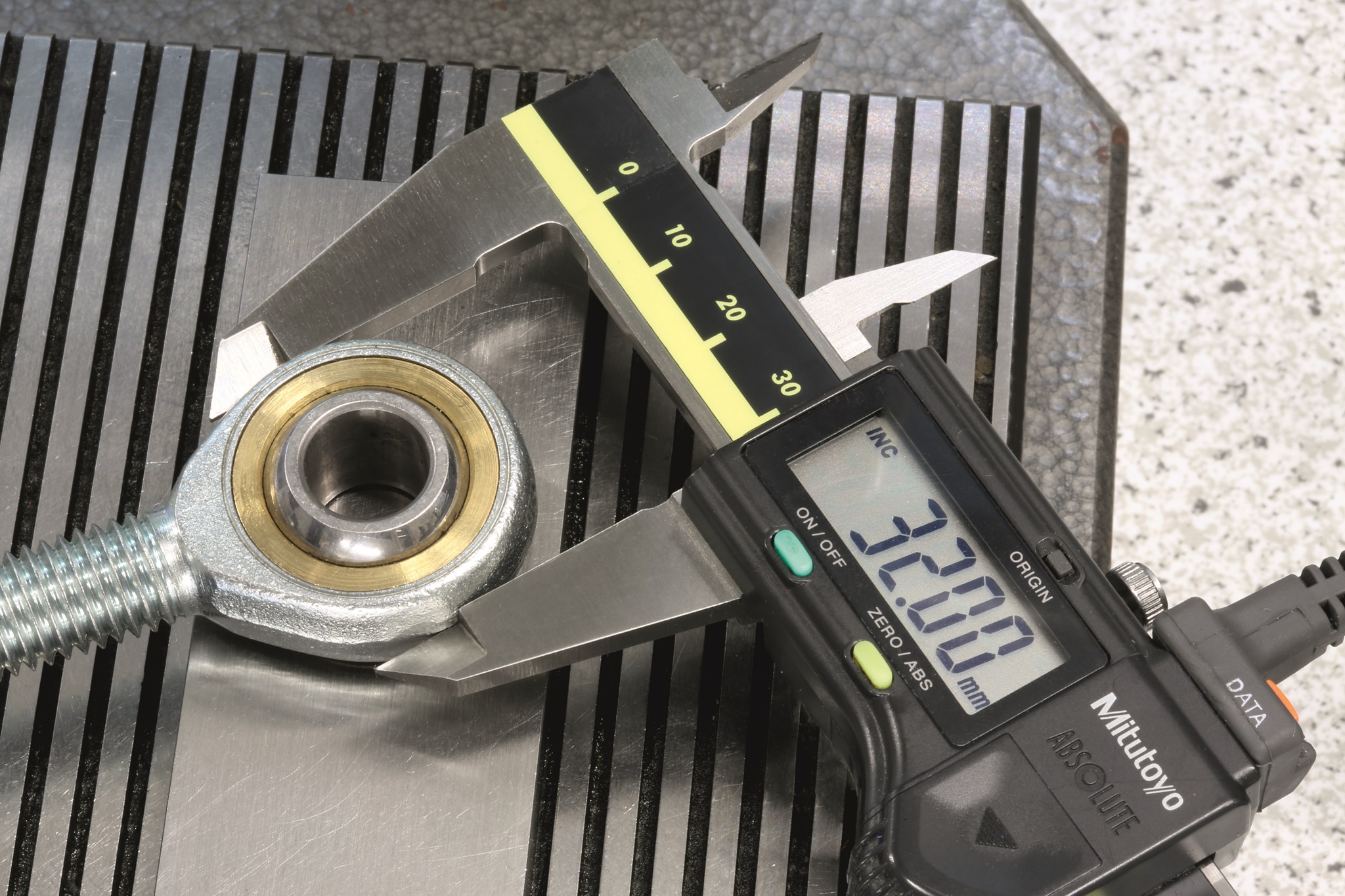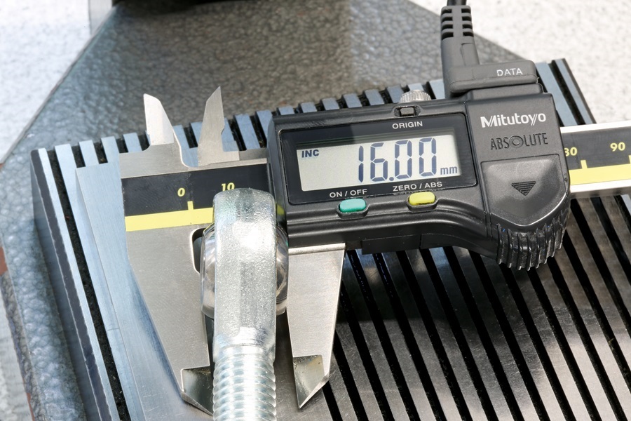 • eine elektronische Schieblehre, welche direkt mit dem Computer verbunden ist, um sowohl den Gewindedurchmesser als auch den Außendurchmesser zu vermessen,