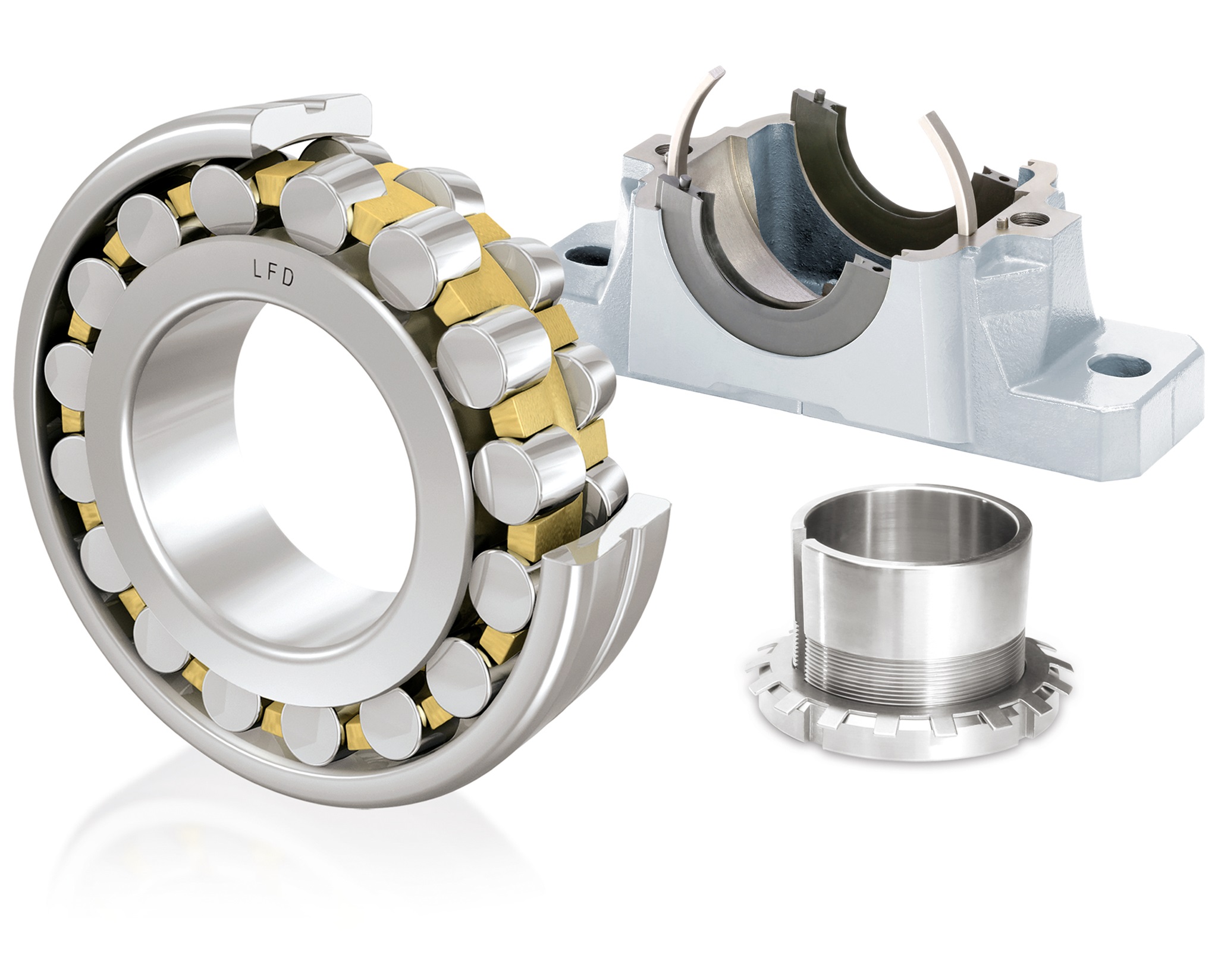 Zur Befestigung von Wälzlagern mit kegeliger Bohrung bietet LFD montagefreundliche Spann- und Abziehhülsen an, die durch Nut und Wellenmuttern befestigt werden.