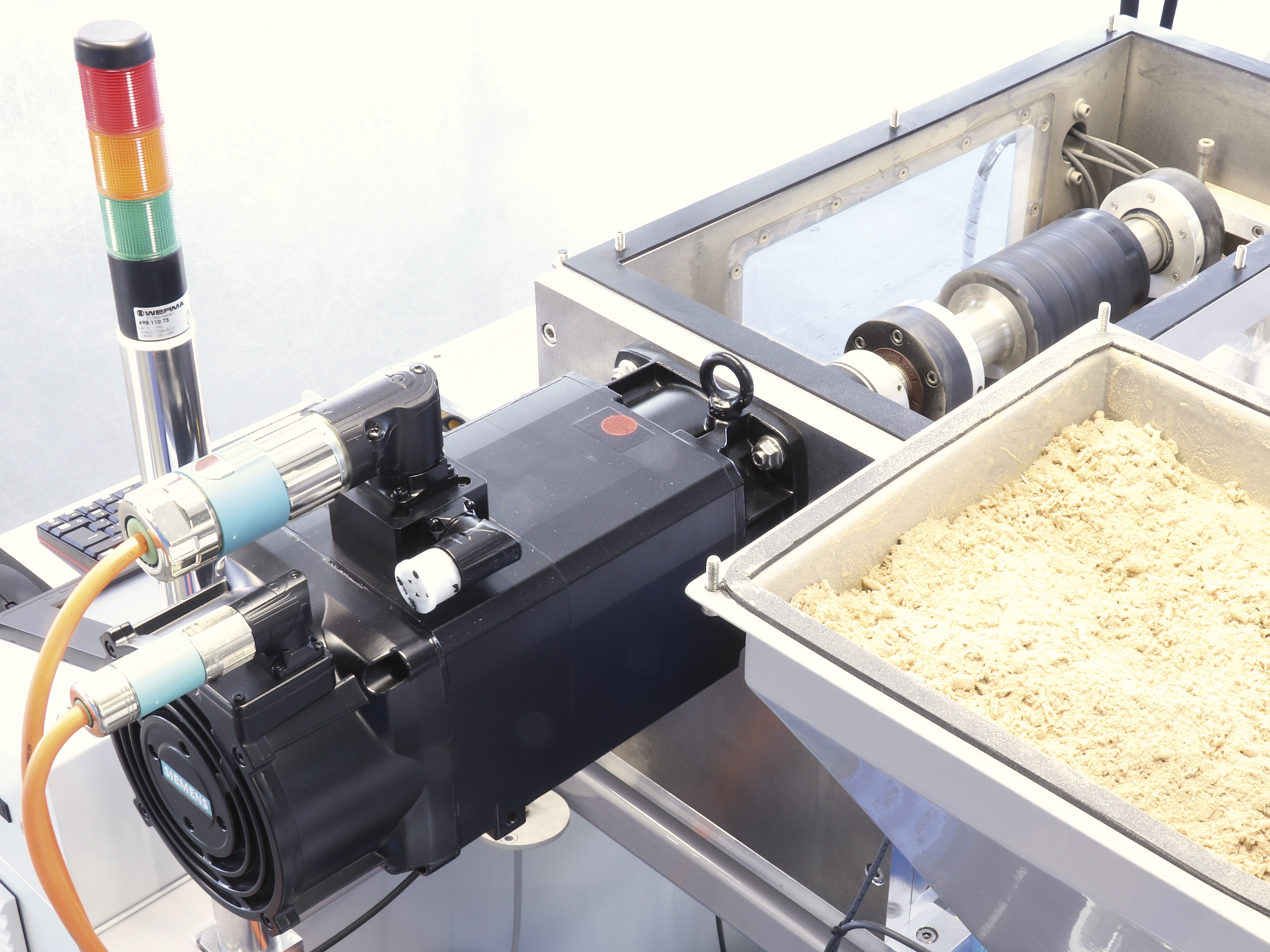Bei den verwendeten kleinen Rillenkugellagern müssen Radiallasten zwischen 300 N und maximal 20.000 N aufgebracht werden. Für diese Bandbreite mit geringen Abweichungen im Betrieb kam daher kein Hydraulikzylinder infrage. Die präzise Belastung der Radiallager wird bei dem Wälzlagerprüfstand WRM 1603 mit einem Kniehebel bewirkt. Über die permanente Erfassung der Kraft mittels Kraftmessdose stellt ein Schrittmotor die Position des Kniehebels hochgenau nach, sodass die Radialkraft nahezu konstant gehalten wird.