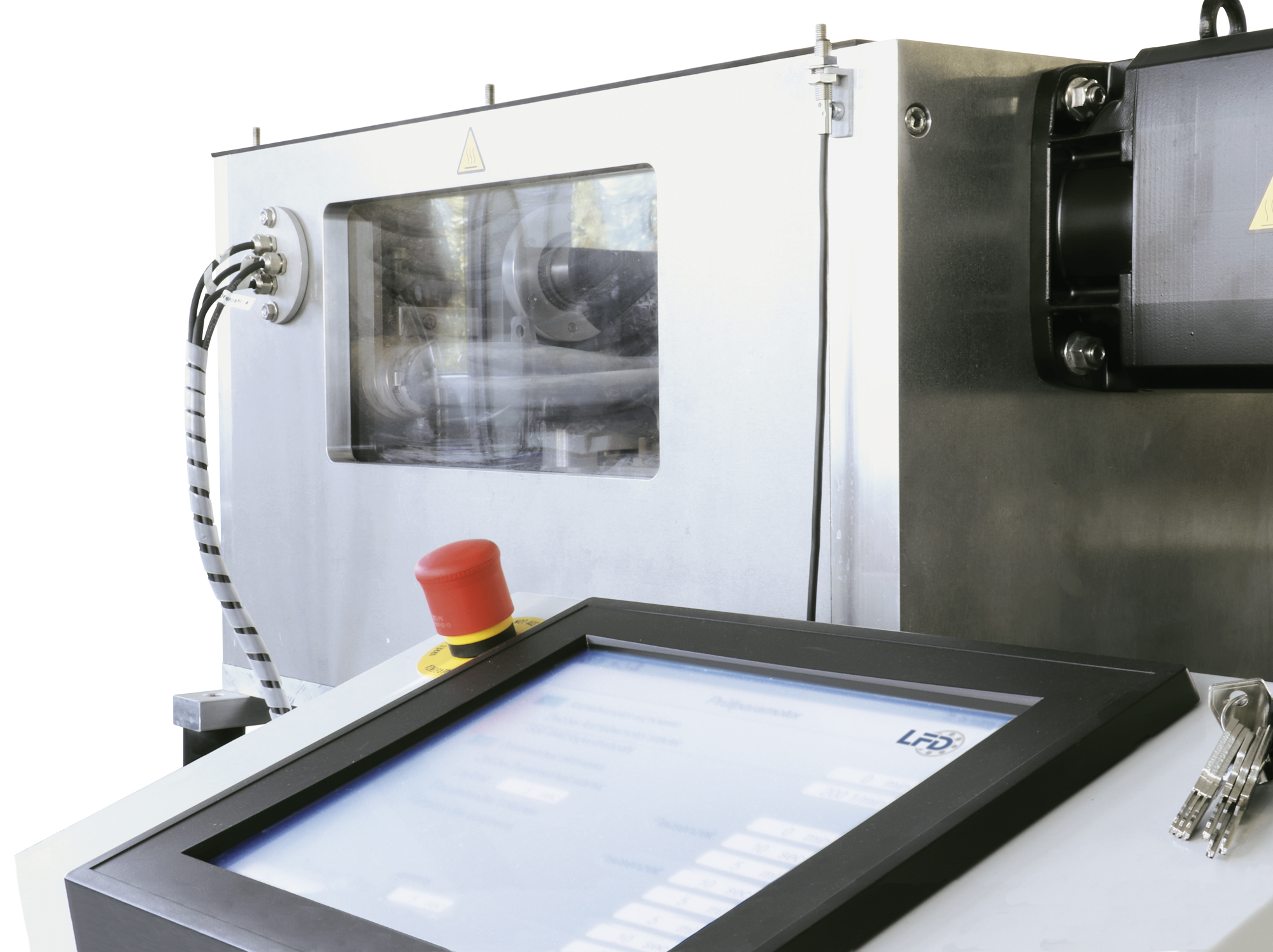 LFD hat nun, zusätzlich zu den bereits bestehenden Prüfständen, mit dem Prüfstand WRM 1603 die Möglichkeit geschaffen, auch an kleinen Radiallagern Lebensdauererprobungen durchzuführen. Mit den variablen Einstellmöglichkeiten für Drehzahl, Kraft und Prüftemperatur kann ein sehr weites Spektrum von Prüfkonditionen abgedeckt werden.